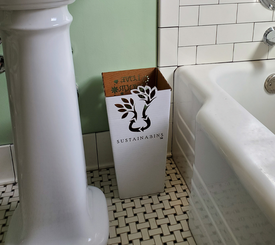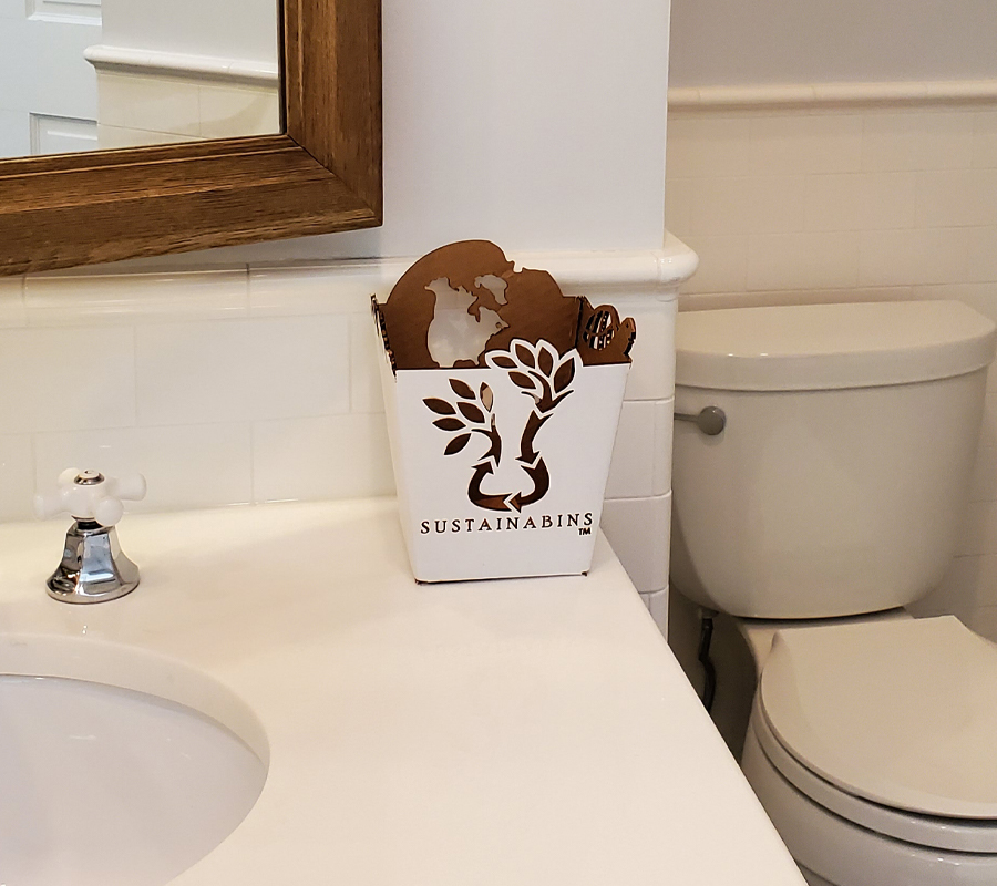 With most recycling bins located in the kitchen or common areas of the workplace, it’s not convenient to take recyclables from other rooms of the home or office. The bathroom is filled with plastic and paper goods — with no place to discard them.